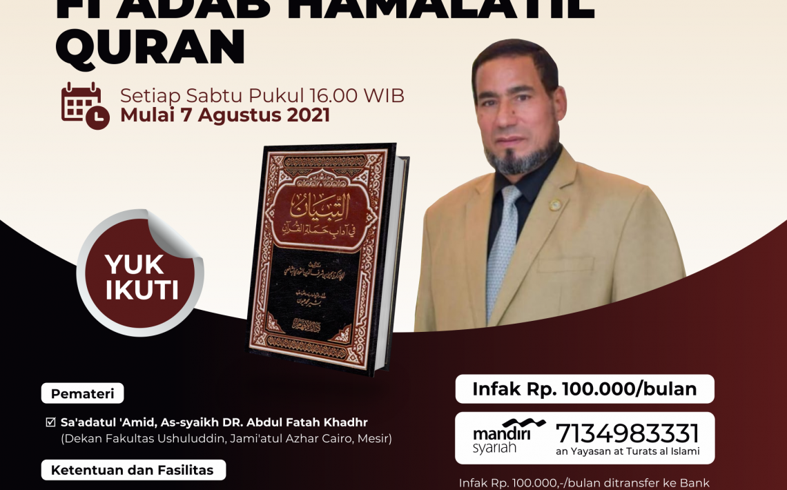 Kirim Rekaman Surat Maryam di sini Masyaikh Pembimbing 1). As-Syaikh Dr. As Samihiy Abdullah (Imam dan Khatib Kementrian Wakaf Mesir/ Muqri di Malaysia)2). As-Syaikh Prof. Dr. Amar Bin Yasir (Muqri’ di Majma’ Buhuts al Islamiy Al Azhar al Syarif)3). As-Syaikh Dr. Abdurrazak Maqam (Kementrian wakaf […]